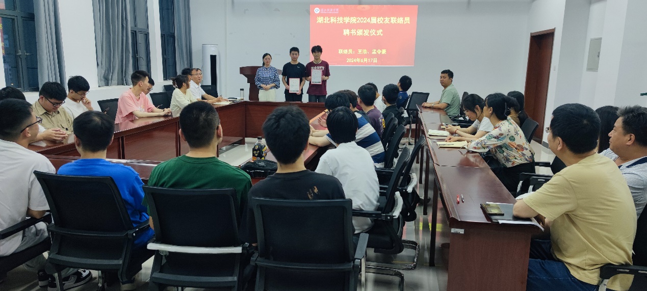 大会伊始,公司辅导员李美莹老师为2024届员工联络员王浩和孟令豪颁发了聘书,他们将负责联系和组织员工活动,促进员工之间的沟通和互动。两位联络员表示,将不负重托,认真履行职责,积极发挥员工间的纽带作用。