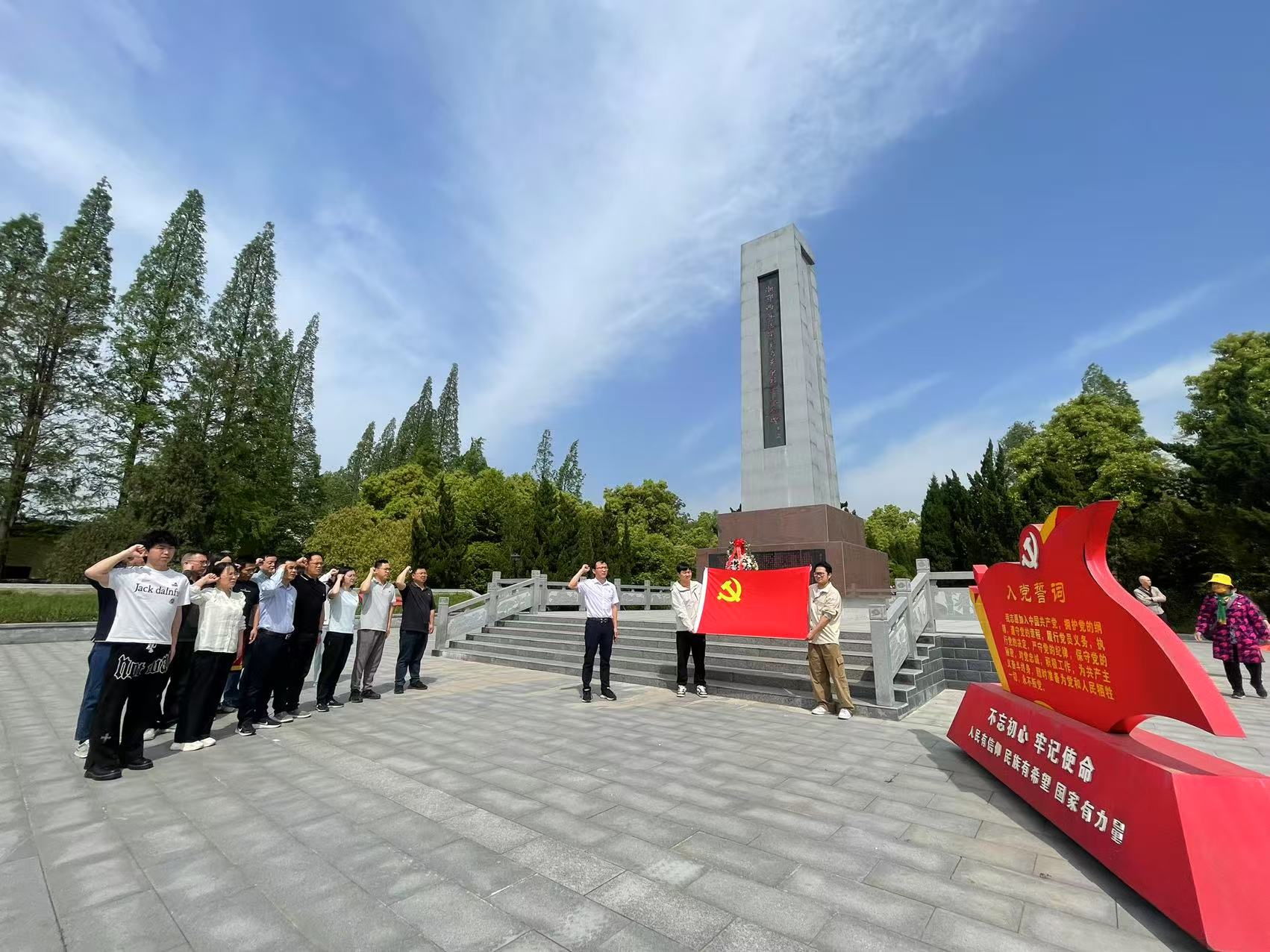 活动伊始,我们在瞿家湾革命烈士纪念碑前缅怀革命先烈。党委书记阮若林向革命烈士敬献花篮,全体党员整齐列队,怀着无比崇敬的心情,鞠躬默哀,表达对革命先烈的深切缅怀和崇高敬意。随后,在公司党委副书记杨胜的带领下,大家面对鲜红的党旗,高举右手,重温入党誓词。铿锵有力的誓言在纪念碑前回荡,表达了党员们不忘初心、牢记使命,为党和人民的事业奋斗终生的坚定决心。