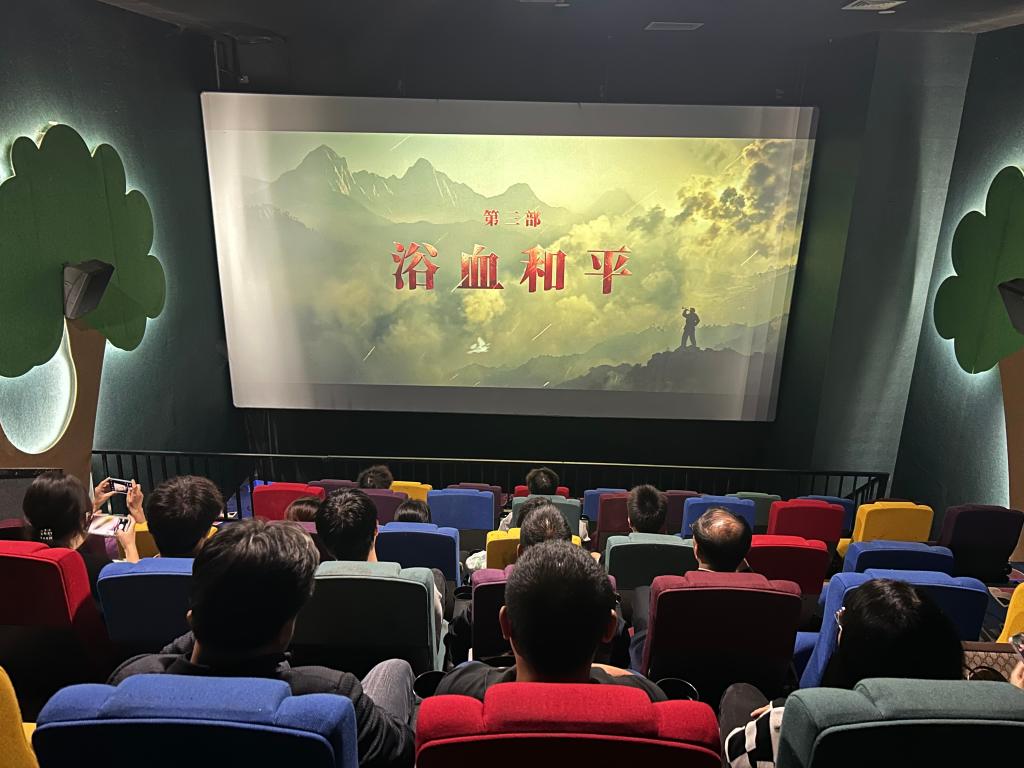 为庆祝中华人民共和国成立76周年,深化爱国主义教育,传承伟大抗美援朝精神,10月16日下午,公司党委组织全体师生党员、入党积极分子代表30余人开展“光影铸魂”主题观影活动,集体观看红色影片《志愿军:浴血和平》。影片以抗美援朝战争“边打边谈”747天的历史为背景,通过战场硝烟与谈判桌前的双重叙事,再现了志愿军将士以血肉之躯保家卫国、捍卫和平的壮烈历程。
