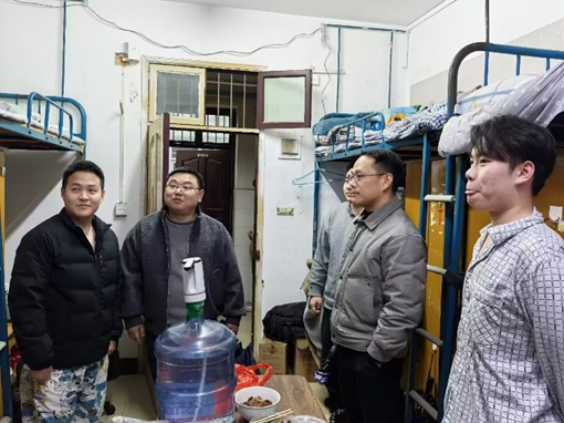 为全面了解员工返校后的思想动态与生活需求,排查宿舍安全隐患,3月1日晚,公司组织开展开学暖心访寝活动。公司经理戴文华、员工工作副书记杨胜、教学副经理王可畏带领辅导员及各班班主任,分东西两区同时深入员工宿舍,与同学们面对面交流,共筑安全和谐校园。