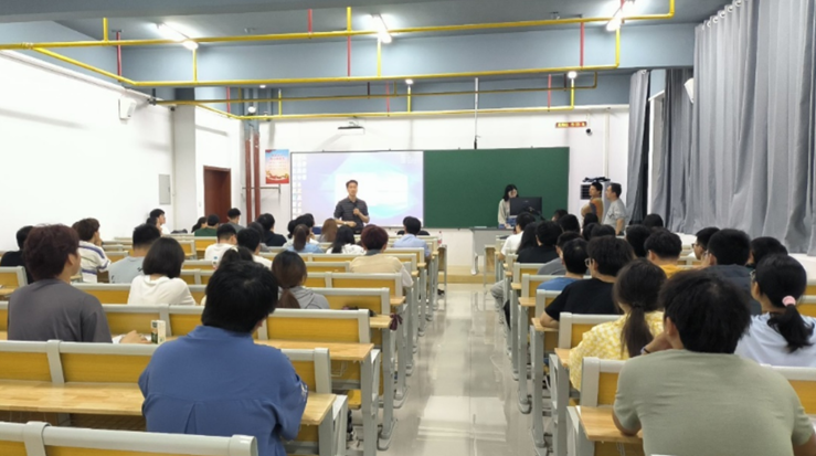 王可畏副经理详细介绍了公司创新创业优势资源。他指出,公司依托自动化、智能控制等优势学科,联合湖北香城智能机电研究院构建了完善的创新创业指导体系与实践平台。智能制造协会将充分发挥载体作用,为同学们提供专业指导、赛事孵化等全方位支持,全力助推创新创业人才培养高质量发展。